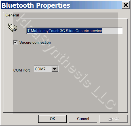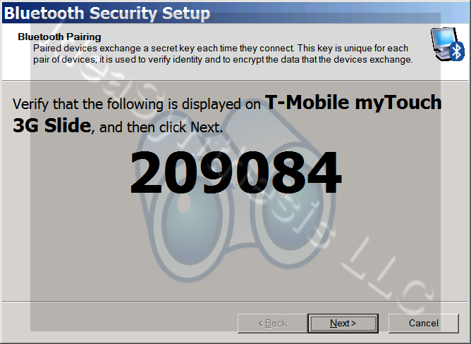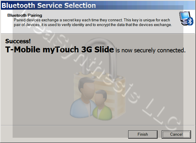 Double-click on the phone and a Bluetooth security dialog will open up as shown in Figure 11 below.