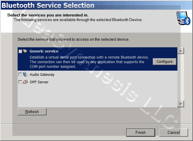 Immediately after the pairing success dialog the services selection dialog will appear as shown in Figure 15 below.