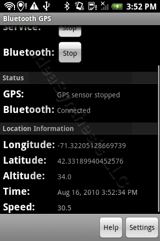 Tap the service Start button to start the GPS service, as shown in Figure 3 below.