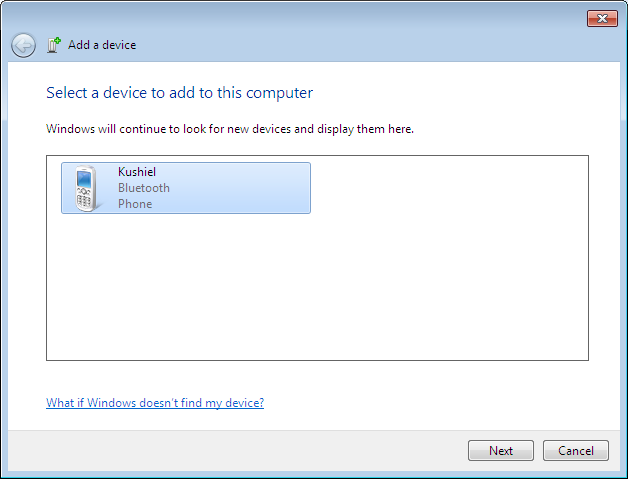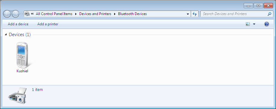 The Bluetooth Devices window will appear as shown in Figure 16 below: click on the phone to open the device properties.