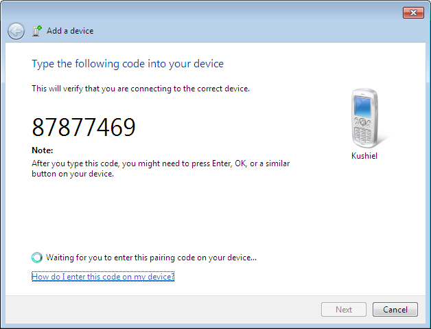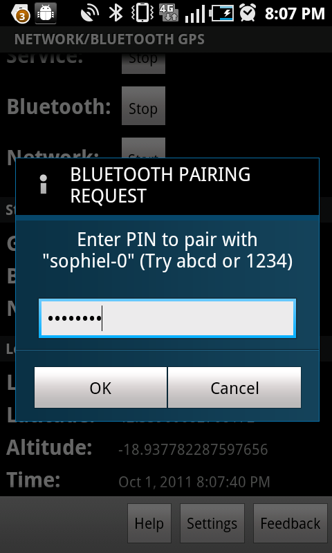 On the phone, a pairing code input will appear as shown in Figure 12 below. Enter the code displayed on the screen into the dialog.