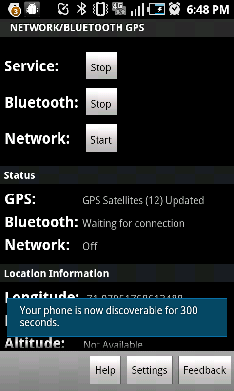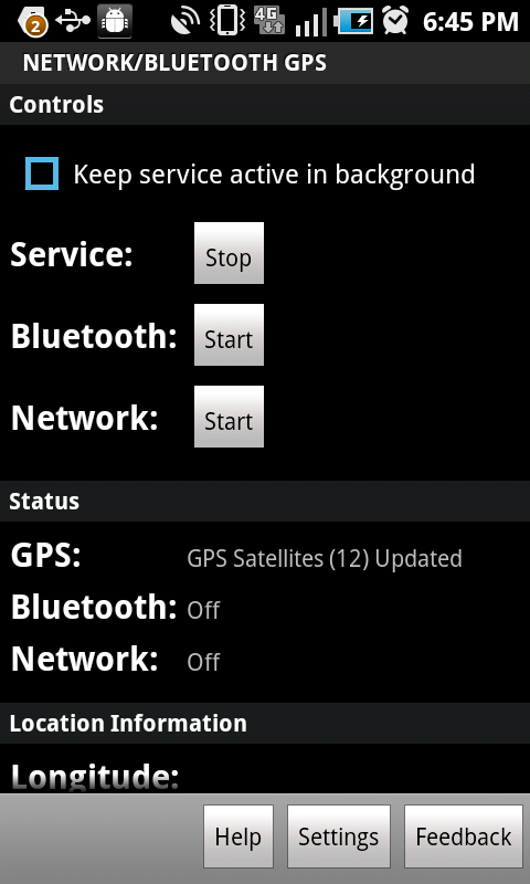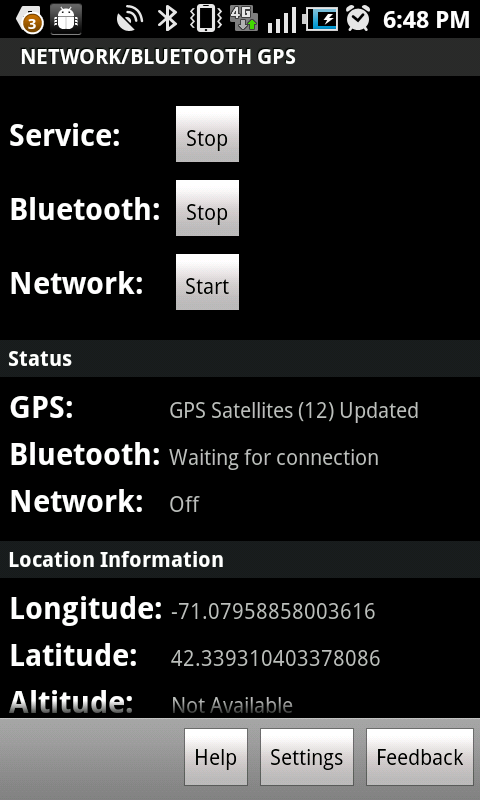 Tap the service Start button to start the GPS service, as shown in Figure 3 below.
