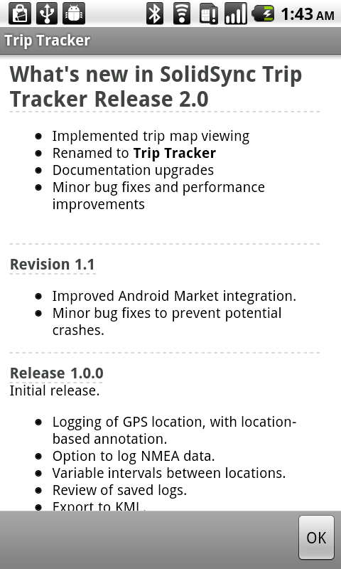 Tap the application icon to start. When the application starts up the first time the release notes will be shown as in Figure 1 below.