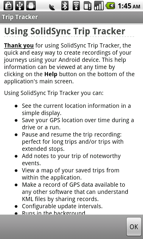 Tap the OK button to show the application help screen, as shown in Figure 2 below. This will be automatically shown the first time the application is started.