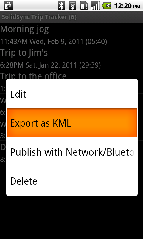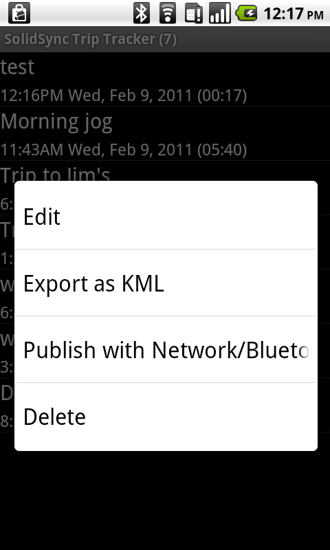 Tap and hold on a trip to open the context menu for that trip: this provides a series of options as shown in Figure 28 below.