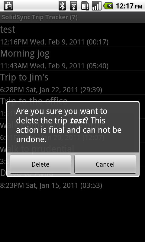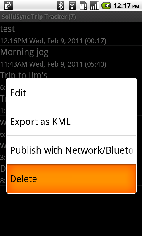 To delete a trip, select the Delete context menu item as shown in Figure 29 below.