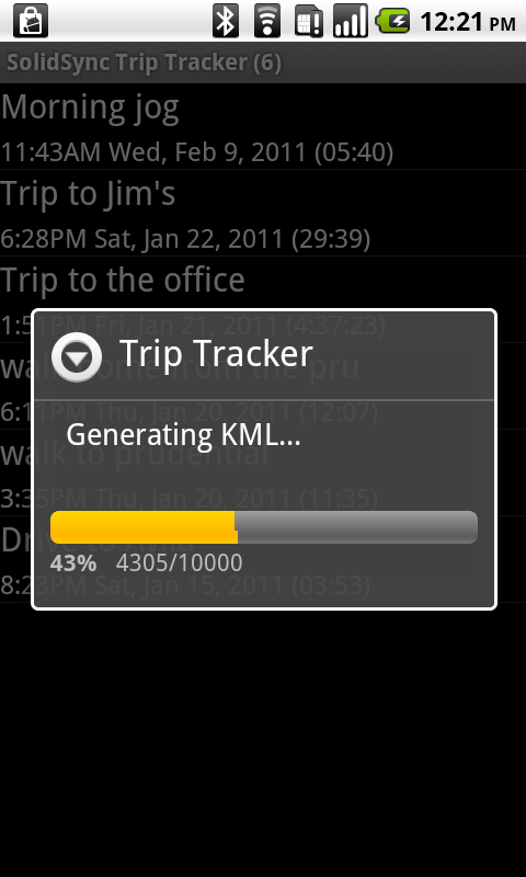 If this is the first time a KML file is being exported for a specific log then a dialog will appear that shows the KML file being generated, as shown in Figure 33 below.