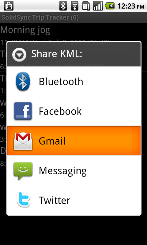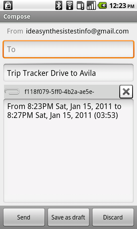 Once the appropriate sharing method is chosen (in this case, GMail), the KML file is passed along as shown in Figure 35 below. You can now enter an email address and send the file.