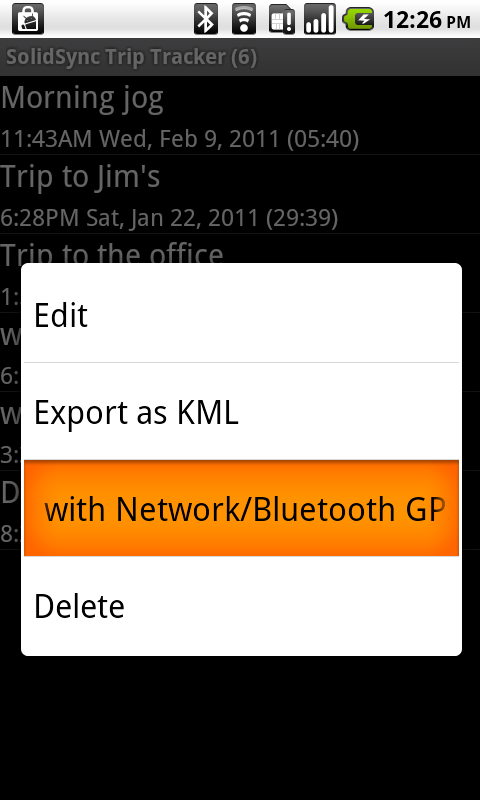 - Export your trip using SolidSync Network/Bluetooth GPS to other applications that can use GPS NMEA data over Bluetooth or TCP/IP, including applications such as ESRI’s ArcGIS, Wireless InSSIDer, and others.